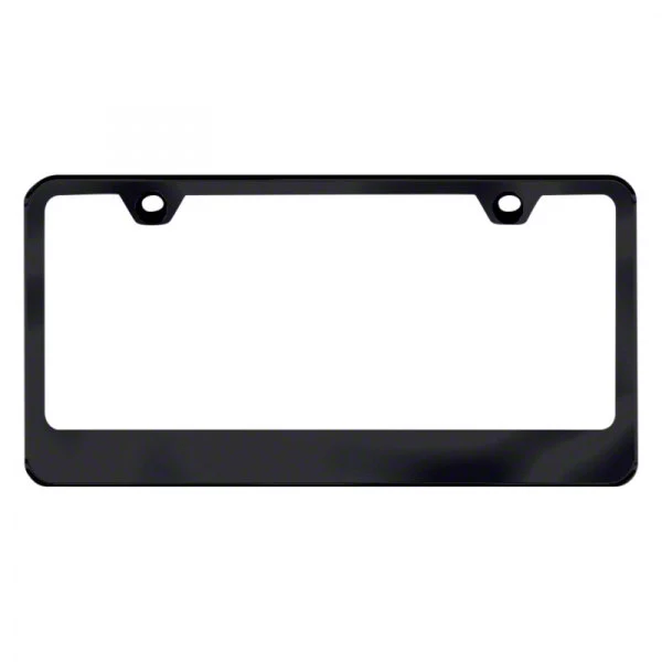 Personalized Plate Frame. Make your vehicle your own with this Wide Bottom License Plate Frame, designed to add personal flair to your vehicle's facade thanks to its hefty look and bold black powder coat finish, which gives it a unique aesthetic that sets it apart from the crowd of average trucks and cars.