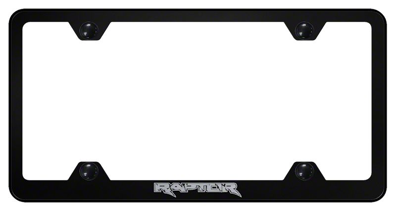 Reliable License Plate Support. The Raptor Laser Etched Wide Body License Plate Frame; Black is designed with a premium wide body design to accommodate larger license plates, ensuring a perfect fit and seamless integration with your vehicle. Featuring a precision laser etched Raptor logo, this license plate frame offers a unique and stylish look that sets it apart from standard frames. The black finish adds a modern and sophisticated touch to your vehicle's appearance, making it the ideal choice for Raptor enthusiasts seeking to personalize their ride.