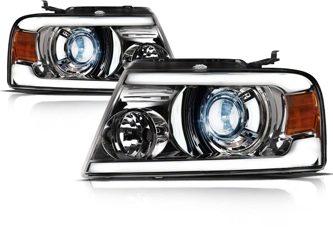 Application. This LMX Series LED Projector Headlights with Chrome Housing and Clear Lens fits all 2004-2008 Ford F-150 models.