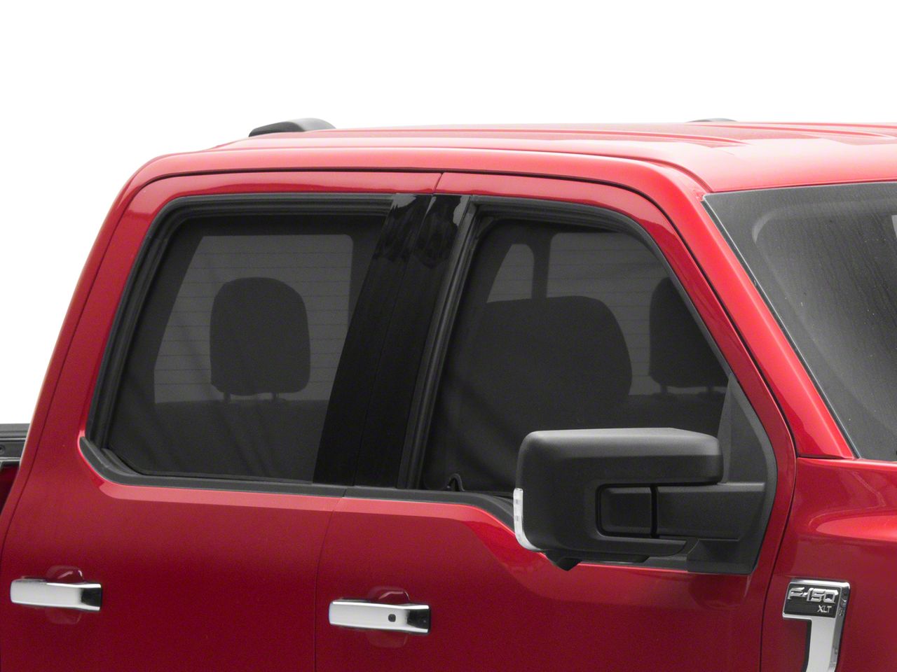 Construction and Appearance. Made from high-quality, breathable mesh fabric, these sunshades are custom-fitted to match the windows of the F-150 SuperCrew perfectly. Their design allows for a neat, tidy look that integrates seamlessly with the vehicle's aesthetics.