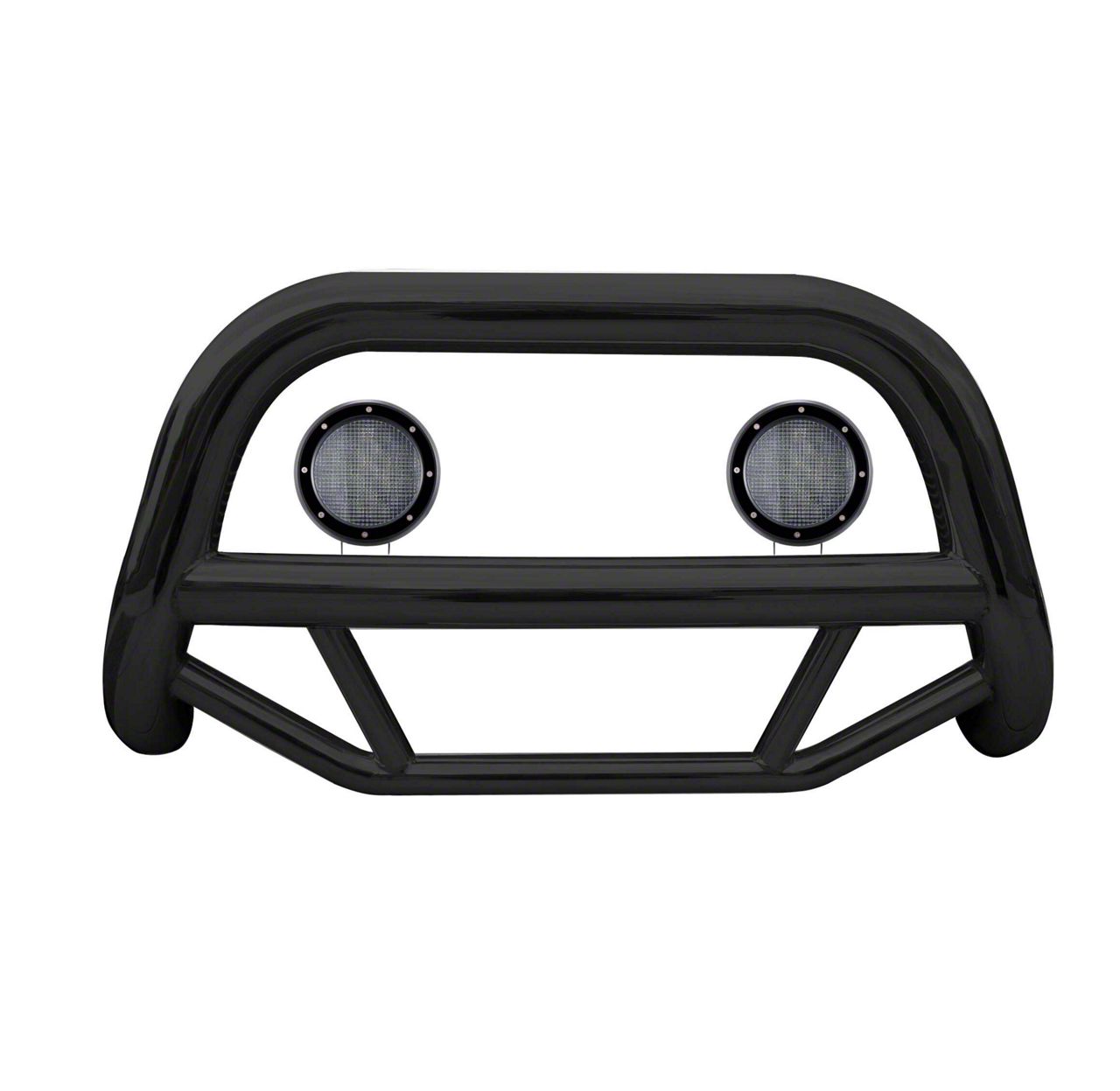 Frontal Protection. The Max Bull Bar with 5.30-Inch Black Round Flood LED Lights enhances your F-150's aesthetics while protecting against minor impacts and damages. This accessory adds a bold, unique style, seamlessly blending functionality with design. The Max Bull Bar also includes 5.30-inch Black round flood LED lights that illuminate the road ahead, providing improved visibility during night drives or in adverse weather conditions.