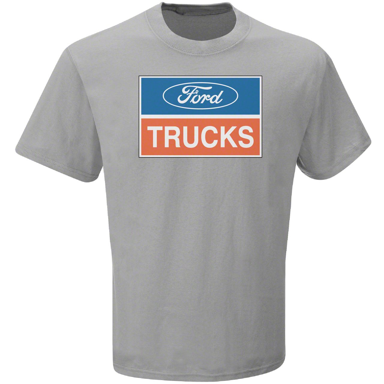 Ford Themed Graphic T-Shirt. This great looking gray short sleeve t-shirt is a must have for all Ford enthusiasts. Officially licensed, this graphic tee features the Ford Trucks logo. This T-Shirt makes the perfect gift for yourself or the fellow Ford lover in your life.