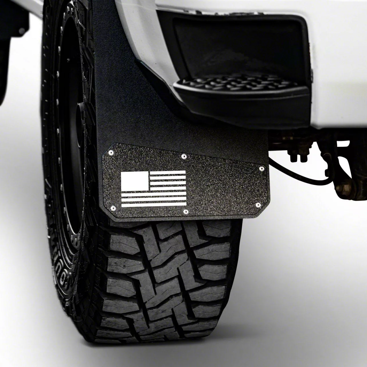 Style and Quality. Merica Mud Flaps are the perfect way to show your patriotic spirit while keeping your vehicle protected from the elements. The white flag logo is debossed into a colorful backing, making it resistant to harmful UV rays and able to withstand extreme weather conditions.
