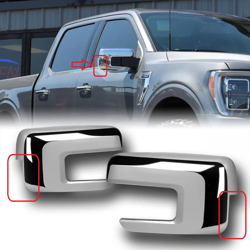 Chrome Mirror Enhancement. The Mirror Covers with Turn Signal Cutouts are an excellent upgrade for any vehicle. These covers are designed to enhance the exterior by adding a touch of luxury and aggressive style. With precision engineering and a chrome-plated finish, they elevate the truck’s appearance while maintaining functionality and durability.