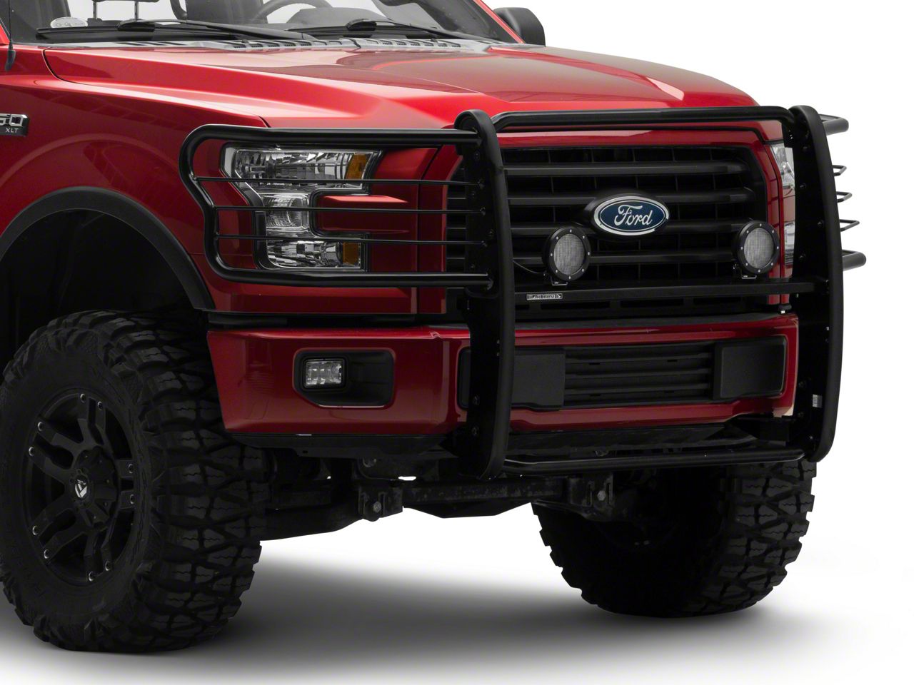 Application. The Modular Grille Guard with 5.30-Inch Black Round Flood LED Lights and Front Axles; 4.56 Gear Ratio fits 2015-2023 F-150 models, excluding PowerStroke & Raptor.