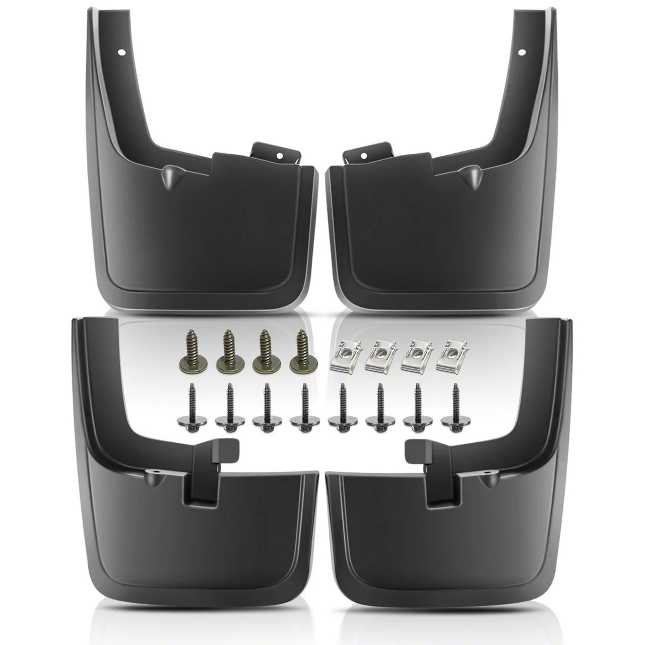 Clean and Protected. Boost your vehicle's defense against the elements with our premium Mud Flap Splash Guards. Designed for both front and rear placements, this set of four guards offers unparalleled protection from mud, dirt, ice, gravel, and road salt, keeping your vehicle clean and pristine in all driving conditions.