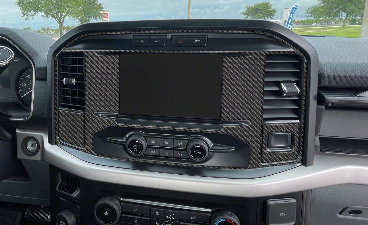 Application. The Navigation Screen Accent Trim; Domed Carbon Fiber fits all 2021-2026 Ford F-150 models with 8-Inch Screen.
