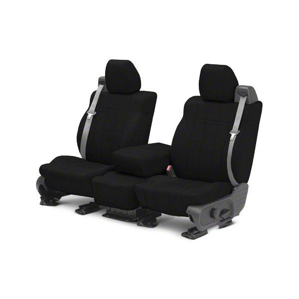 Elegant Dark Look. Elevate your F-150's interior aesthetics with the NeoSupreme Front Seat Covers; Black. The classic black design adds a touch of sophistication to your vehicle's interior, making it both functional and fashionable. The slip-on design, complemented with adjustable straps and buckles, ensures a hassle-free setup without the need for any specialized tools.