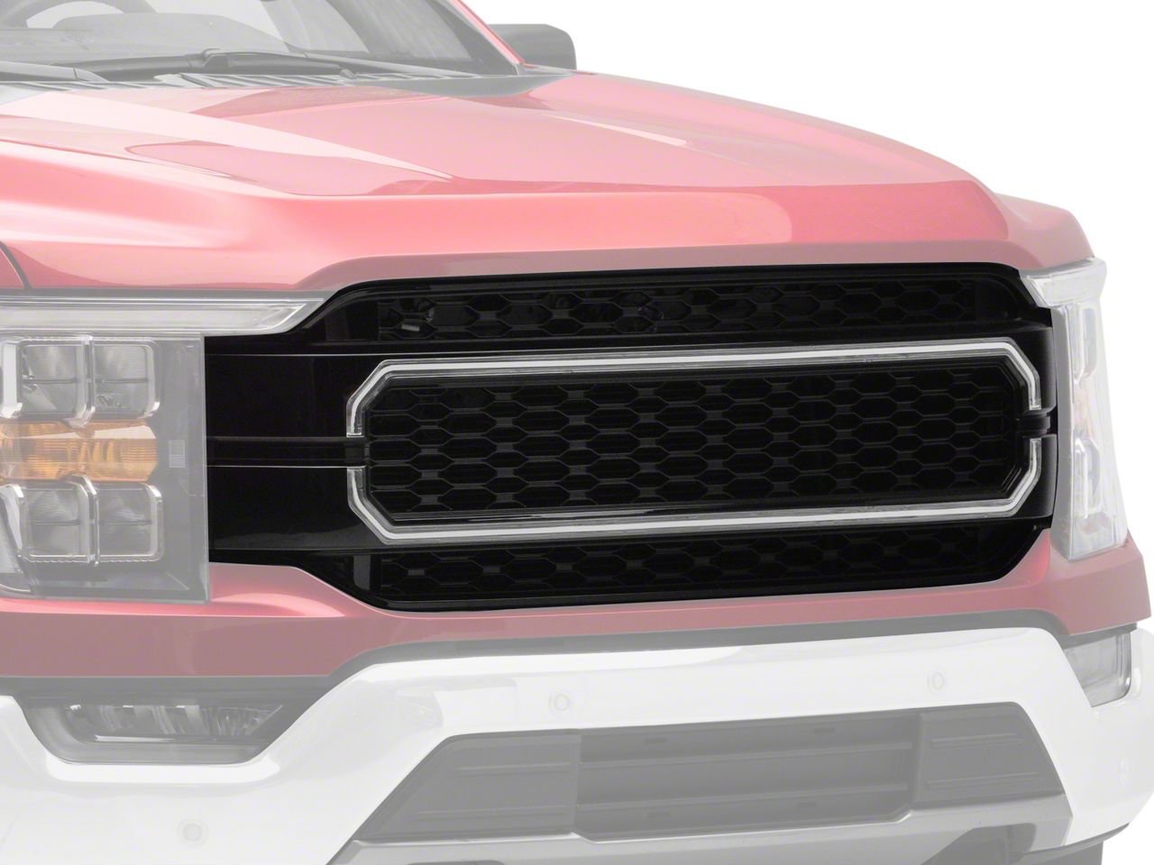 Lighting and Style Upgrade. The Nexum Series Upper Grille is a premium enhancement for 2021-2023 Ford F-150 models without a forward-facing camera, excluding Raptor models. It combines aggressive styling with practical lighting, thanks to an integrated bright white running light bar that increases front-end visibility while refining your truck’s exterior look.