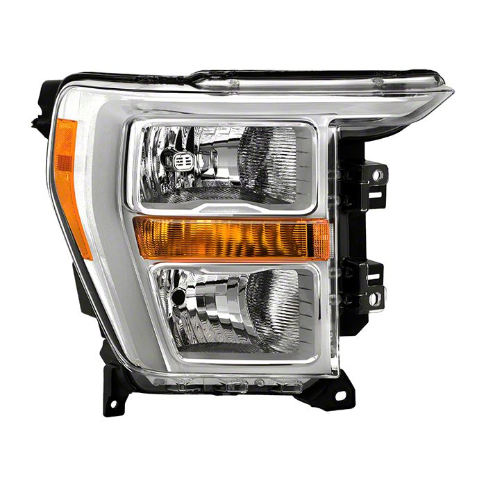 Enhanced Lighting Performance. Designed specifically for 2021-2023 Ford F-150 models with factory halogen headlights, this headlight provides improved visibility and a sleek, modern appearance. Featuring a polished chrome finish housing and clear transparent lens, it enhances both the functionality and aesthetic of your vehicle’s front end.