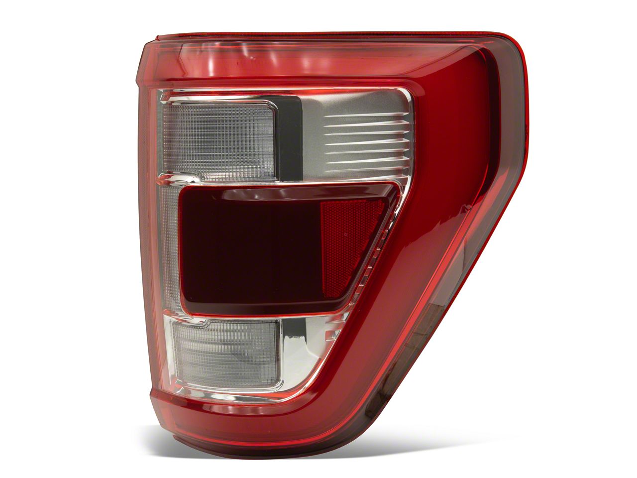 Seamlessly Integrate. Upgrade your F-150's visibility and style with the OE Style LED Tail Light, meticulously designed for passenger side placement and a perfect match for models equipped with factory LED BLIS Tail Lights. This direct-fit replacement ensures effortless installation, seamlessly integrating into your vehicle's design with its chrome housing and red/clear polycarbonate lens.