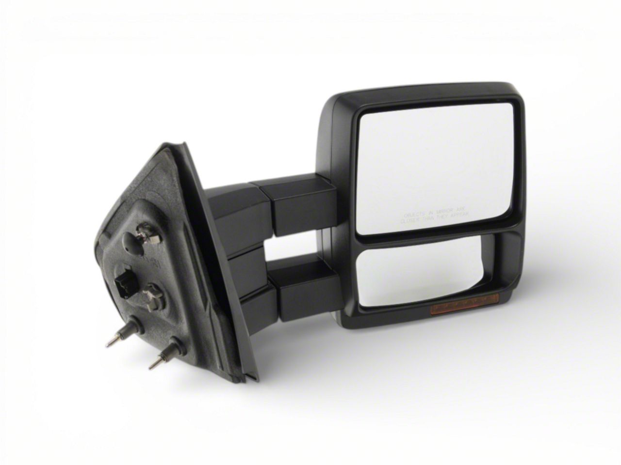 OEM Style Replacement Towing Mirror. Replace your F-150's cracked or broken towing mirror with a brand new OEM style replacement. This manual folding/telescoping, dual lens, towing mirror is designed to replace the power-operated, heated passenger side mirror found on 2009-2012 Ford F-150 models equipped with mirror mounted turn signal lights and puddle lamps.