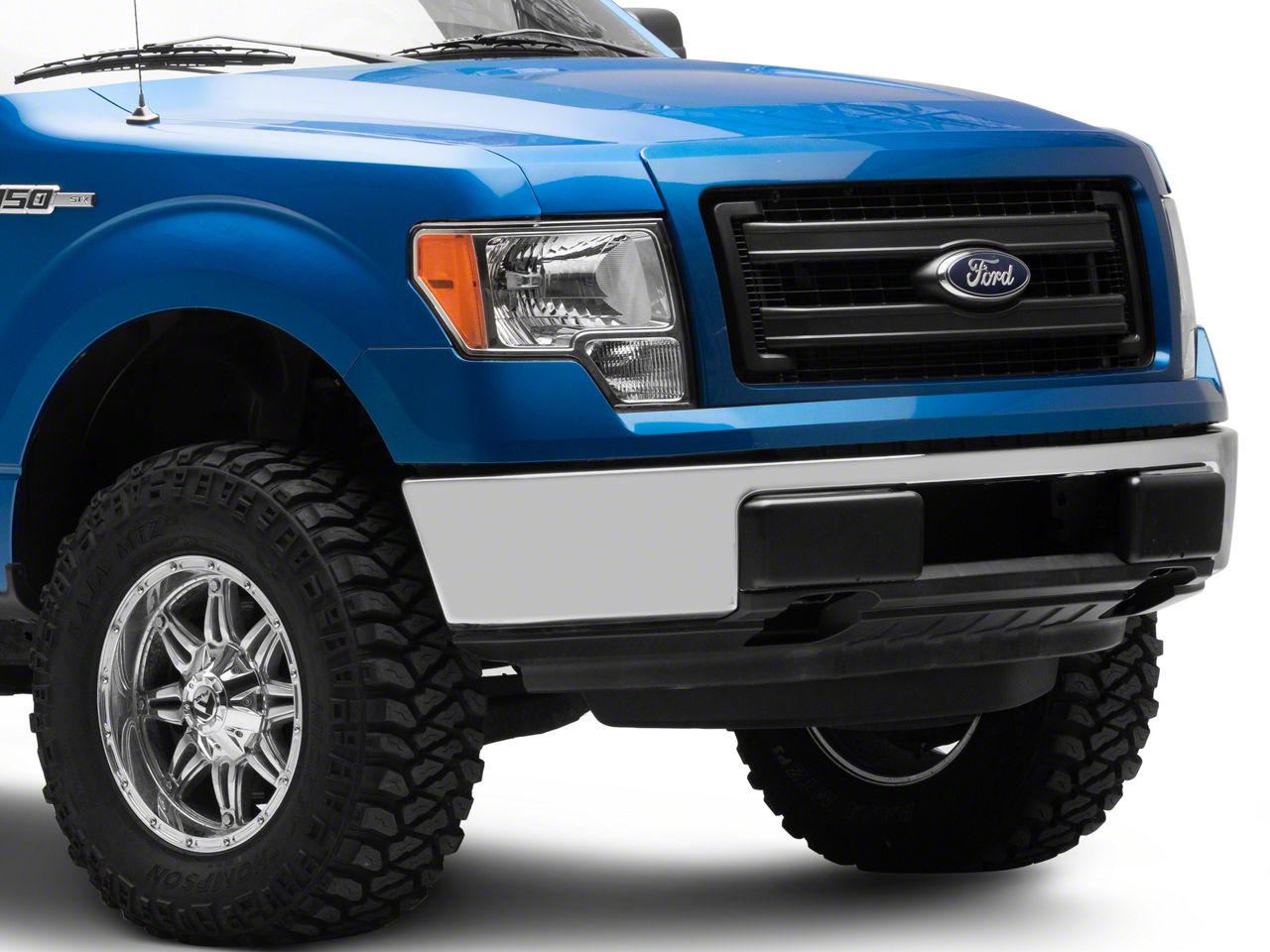 Application. This Chrome OEM Style Front Bumper Without Fog Light Holes is made to fit 2009-2014 Ford F-150 models excluding Raptors.