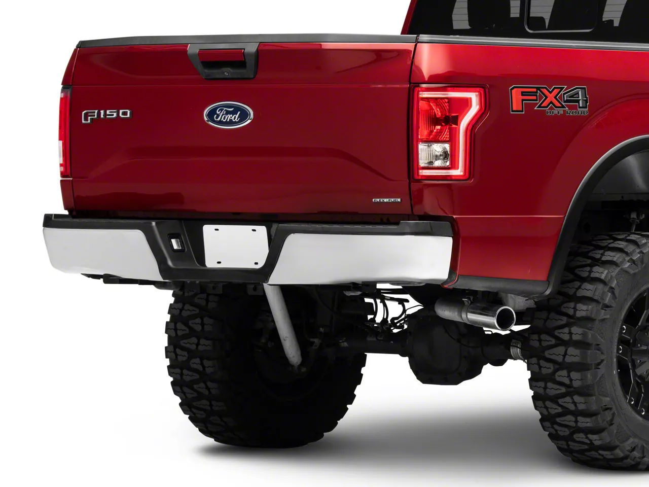 Enhanced Off-Road Protection. Replace your stock bumper with this OEM Style Rear Bumper; Not Pre-Drilled for Backup Sensors; Chrome for a tougher off-road style and confidence. This rear bumper provides your Ford F-150 with an enhanced off-road stance and a stylishly aggressive rear end armor. It comes with license plate lamp mounts and has non-slip stepping areas on each side.