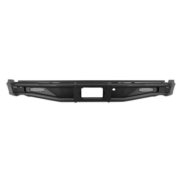 Construction and Appearance. Constructed from durable and strong 14-gauge steel, this rear bumper features a 2-inch diameter tube frame and includes 1.50-inch diameter center tubes. It comes with integrated bolt-on LED light mounts and boasts a textured black finish for a rugged and stylish look.