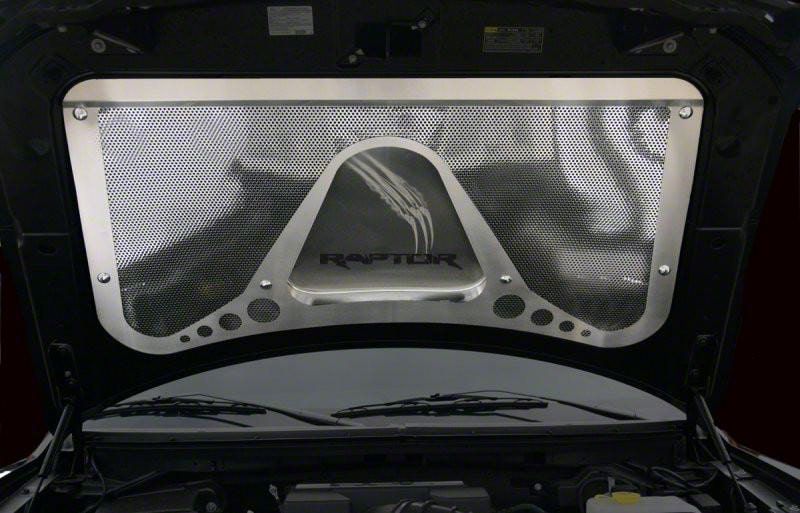 Description. So you just bought a Ford Raptor, the most wicked truck on the planet. Now let's make it a showstopper with this perforated T304 Stainless Steel Perforated Hood Panel! Impervious to weather and any condition you will subject your Raptor too while off-roading....mud, salt, heat, no problem! This Stainless Steel Raptor Hood Panel also acts as a thermal barrier even more so than the factory hood barrier it replaces.Polished/Brushed finish. Shown with optional laser etched "Raptor" logo and claw.Fits all 2010-2014 Ford Raptor trucks, only.Compliments all of our Officially Licensed Ford Raptor Hood Panel Vanity Plate.