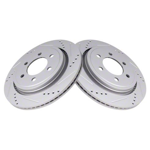 Performance-Oriented Rear Braking. These Rotors are designed for 2015-2017 Ford F-150 models with electric parking brakes, offering a direct replacement for OEM part numbers 681951, 901372, BR901372, and FL3Z2C026A. With a drilled and slotted 6-lug design, these rear rotors enhance cooling and brake bite, making them ideal for daily driving and light-duty performance applications.