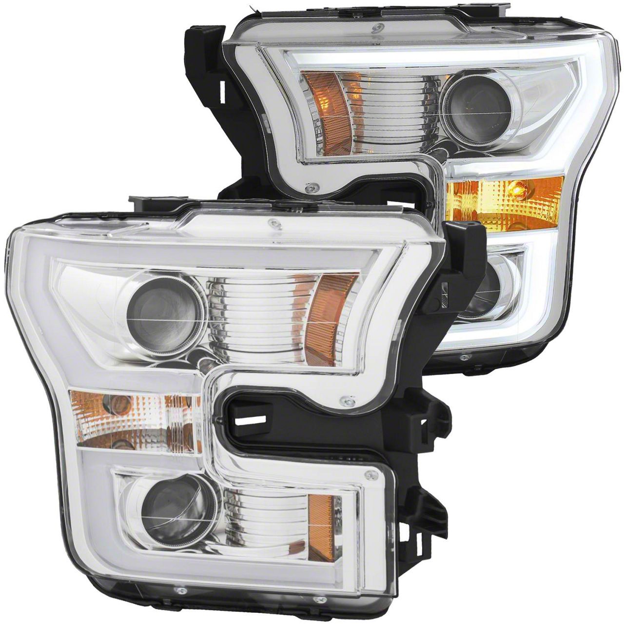 Application. The Plank Style Projector Headlights; Chrome is designed for the 2015-2017 Ford F-150 with Halogen Headlights.