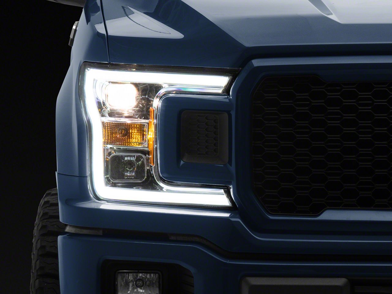 Application. This pair of Plank Style Projector Headlights with Chrome Housing and Clear Lens is designed for all 2018-2020 Ford F-150 models with Halogen Headlights.