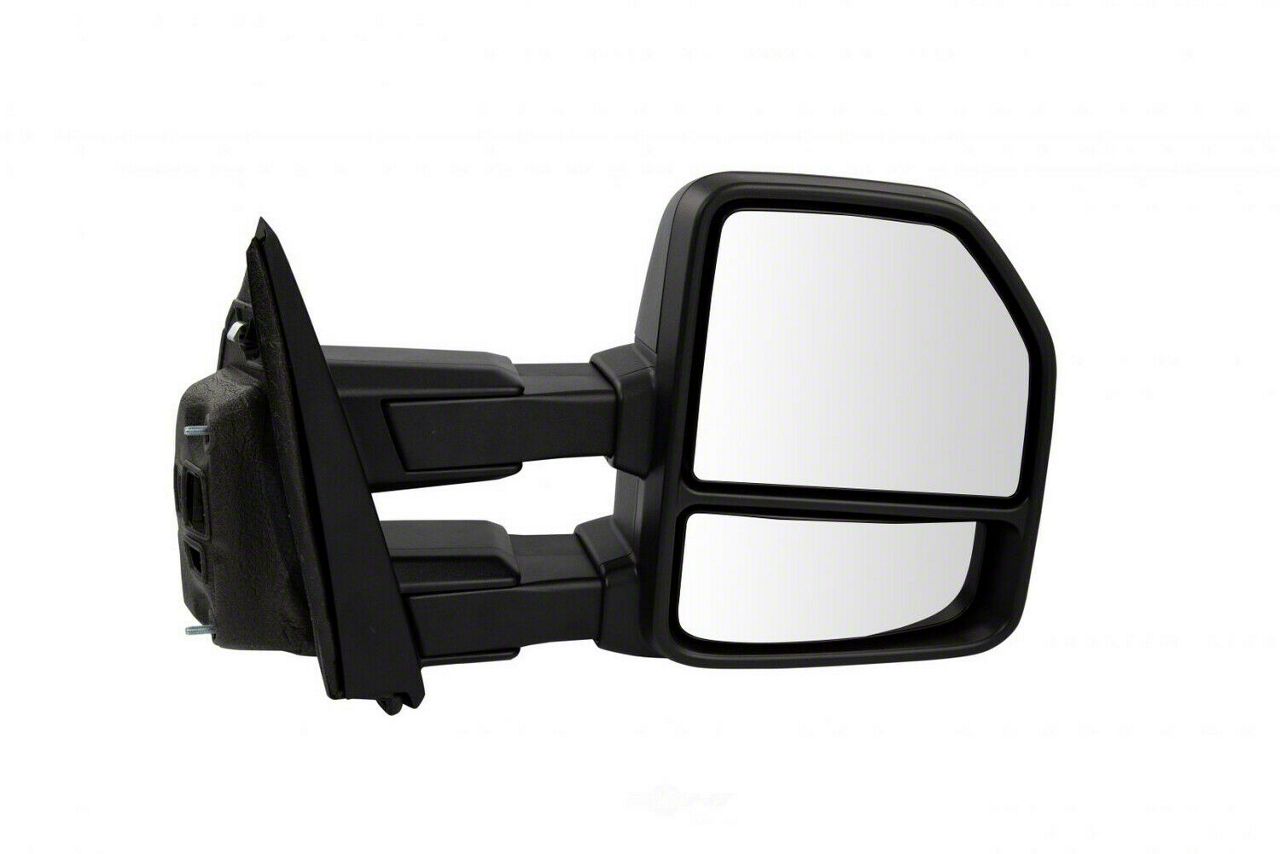 OEM Style Replacement Towing Mirror. Replace your F-150's cracked or broken towing mirror with a brand new OEM style replacement. This power telescoping, power folding and power-operated towing mirror is designed to replace the heated passenger side mirror found on 2015-2018 Ford F-150 models equipped with 360-Degree Camera, memory function, puddle light, spotlight, blind spot detection, and mirror mounted turn signals.