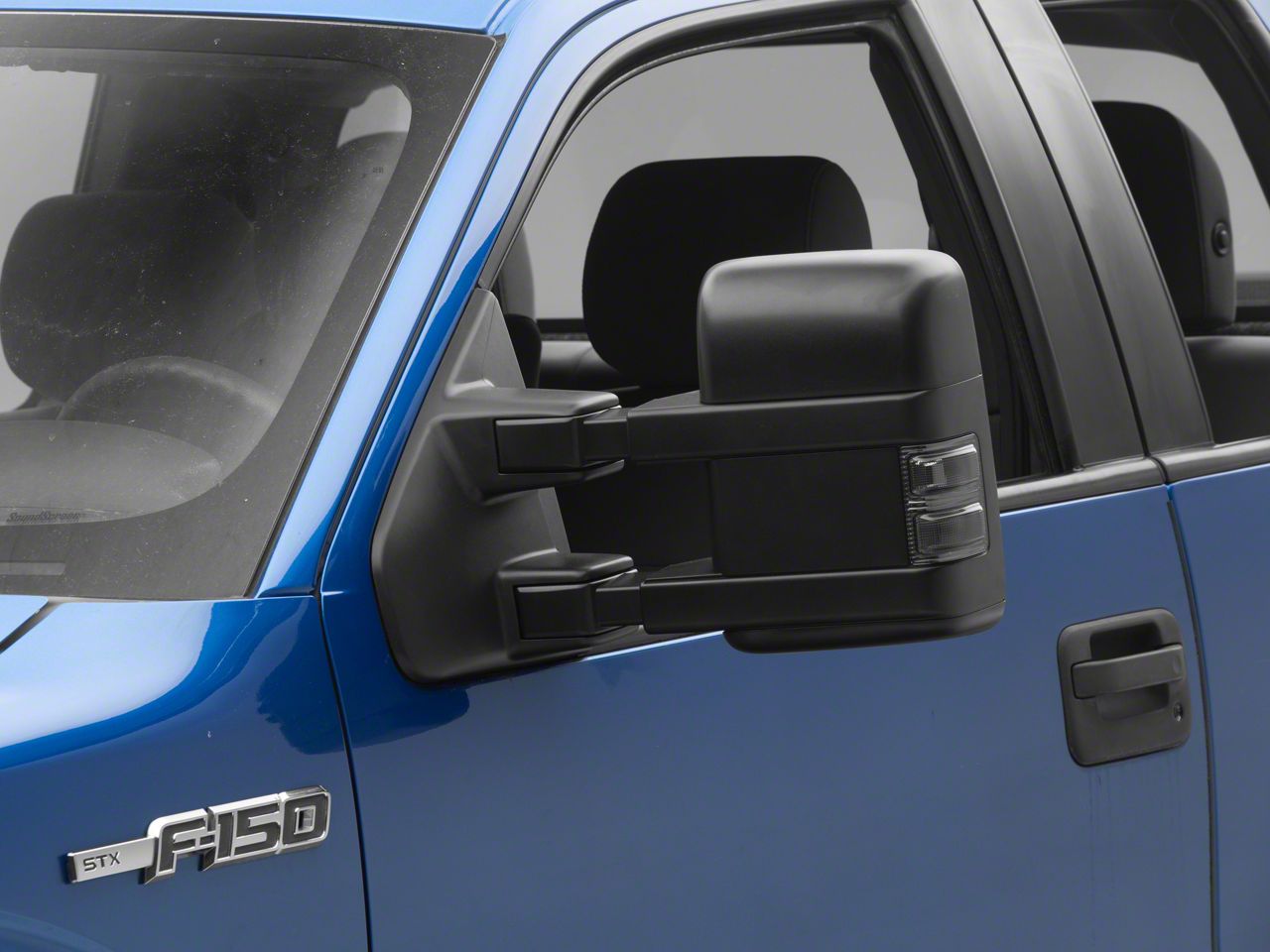 OEM Style Replacement Towing Mirrors. Replace your F-150's cracked or broken towing mirrors with a brand new OEM style replacements. These power telescoping, power folding and power-operated towing mirrors are designed to replace the heated mirrors found on 2013-2014 Ford F-150 models equipped with memory function, and mirror mounted turn signals.