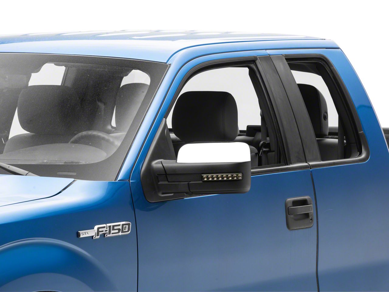 Application. The Powered Heated Mirrors with LED Turn Signal and Puddle Lights; Chrome are compatible with 2007–2014 F-150 models.