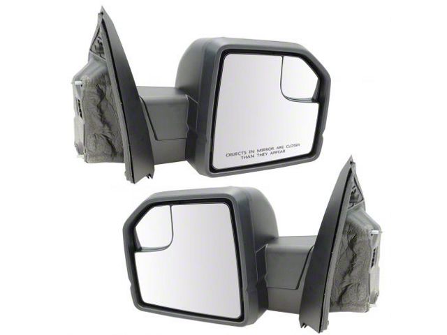 OEM Style Replacement Towing Mirrors. Replace your F-150's cracked or broken towing mirrors with a brand new OEM style replacements. These manual folding and power-operated towing mirrors are designed to replace the heated mirrors found on 2015-2017 Ford F-150 models equipped with puddle light, spotlight, and mirror mounted turn signals.