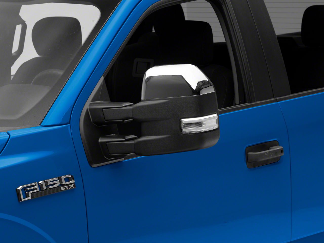 OEM Style Replacement Towing Mirrors. Replace your F-150's cracked or broken towing mirrors with a brand new OEM style replacements. These manual folding and power-operated towing mirrors are designed to replace the heated mirrors found on 2015-2020 Ford F-150 models equipped with mirror mounted turn signals.