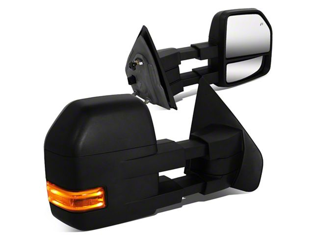 Application. These Black Powered Heated Towing Mirrors with Amber Turn Signals and Puddle Lights are designed to fit 2004-2014 Ford F-150 models that were originally equipped with Mirrors that included Turn Signals and Puddle Lights.