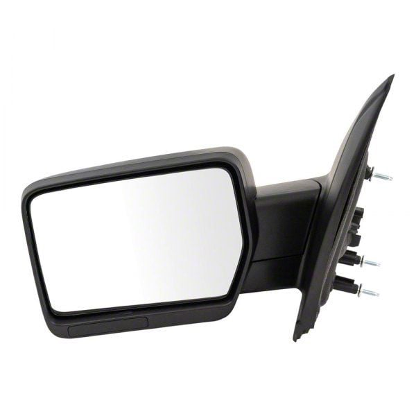 Sleek Textured Finish. Enhance the functionality and style of your F-150 with this premium Powered Mirror, designed specifically for driver side placement. Featuring a sleek textured black finish, this mirror blends seamlessly with your truck's aesthetic, offering a sophisticated look.