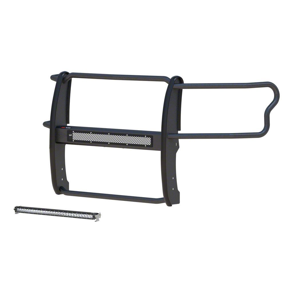 Pro Series Grille Guard. The Pro Series Grille Guard with 30-Inch LED Light Bar is designed to enhance the protection and illumination of your Ford F-150. It features a patented crossbar that houses a powerful single-row LED light bar, offering 14,800 lumens of bright light for superior visibility in various driving conditions.