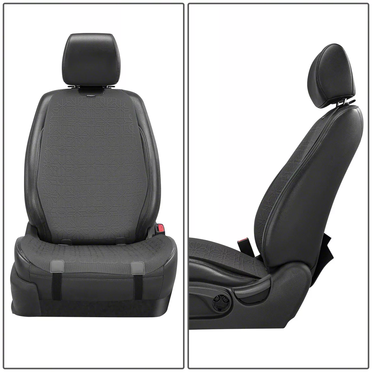 Construction and Appearance. Featuring a dark gray and matte black finish, these seat covers are crafted from durable leatherette material for long-lasting use. Breathable center panels ensure comfort during extended drives, while the stylish OEM-like appearance blends seamlessly with your vehicle’s interior. Each set is airbag-compatible, ensuring safety is not compromised.