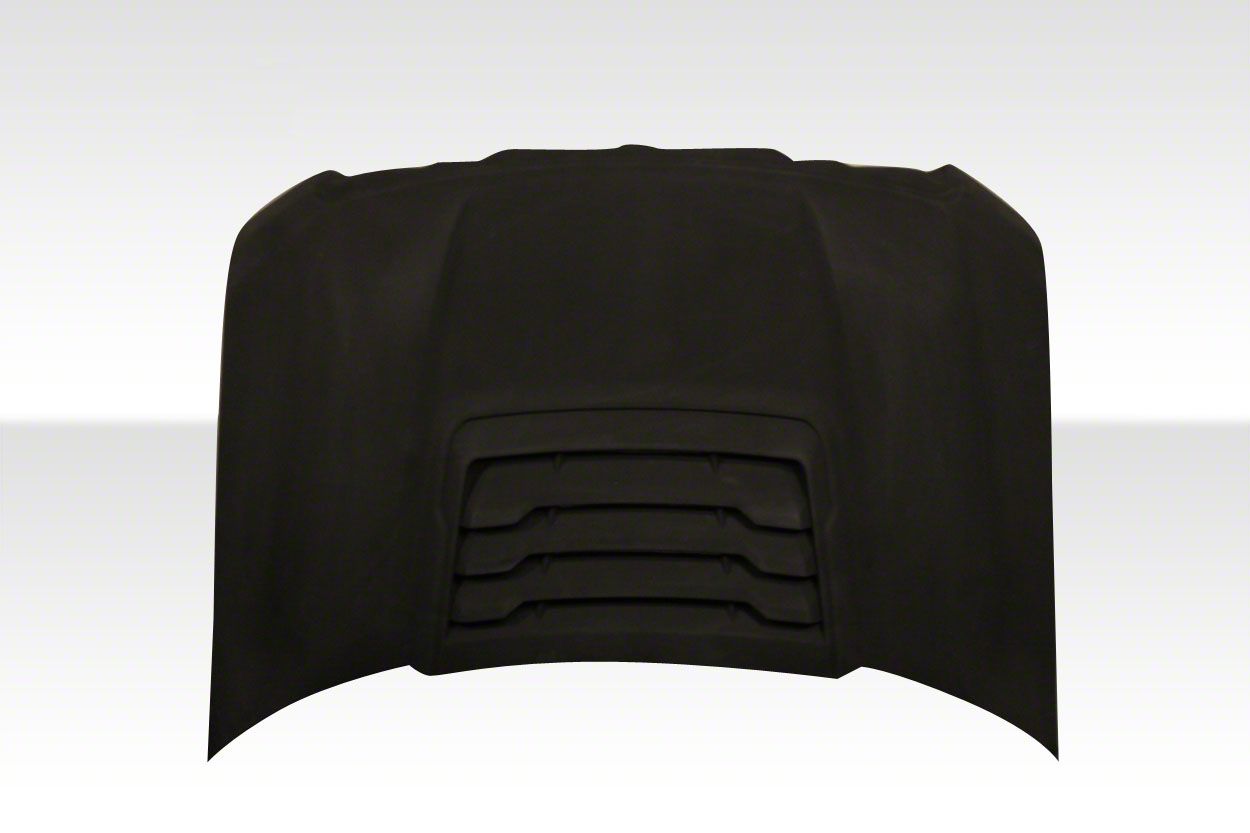 6-Ounce Fiberglass Construction. This hood is manufactured with hand-laid 6-ounce fiberglass, reinforced with plastic and flex resins. It comes with an unpainted finish for custom painting.