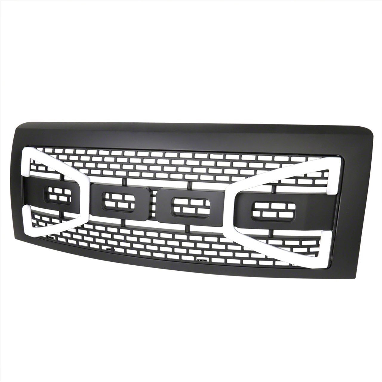 Durable Construction. Made from high-quality ABS plastic, this front grille ensures durability and resistance against weather and road conditions. Its precise fit makes mounting straightforward, requiring no modifications. Enhance the presence and functionality of your F-150 with this robust, stylish grille.