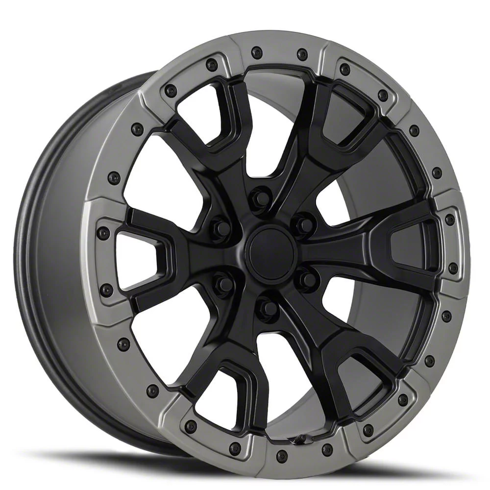 Raptor Style Satin Black with Gray Ring 6-Lug Wheel; 20x9; 20mm Offset exudes a sleek aesthetic appeal, complementing a range of vehicle styles. Its dark stainless finish emanates sophistication, while the brand reputation of ensures robustness. This wheel seamlessly merges elegance with durability.