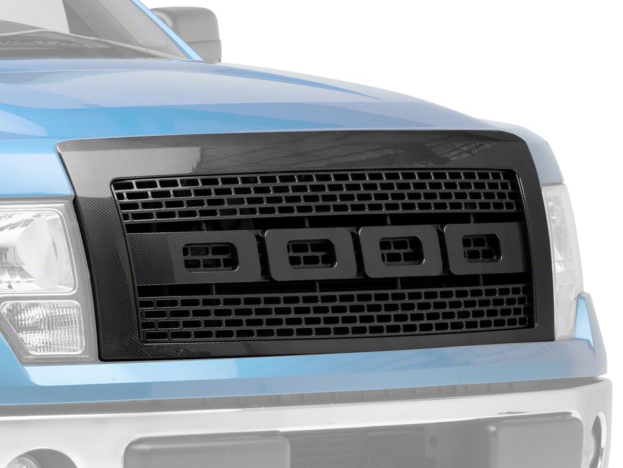 Application. Raptor Style Upper Replacement Grille; Carbon Fiber Look is compatible with the 2009-2014 Ford F-150, Excluding Raptor.