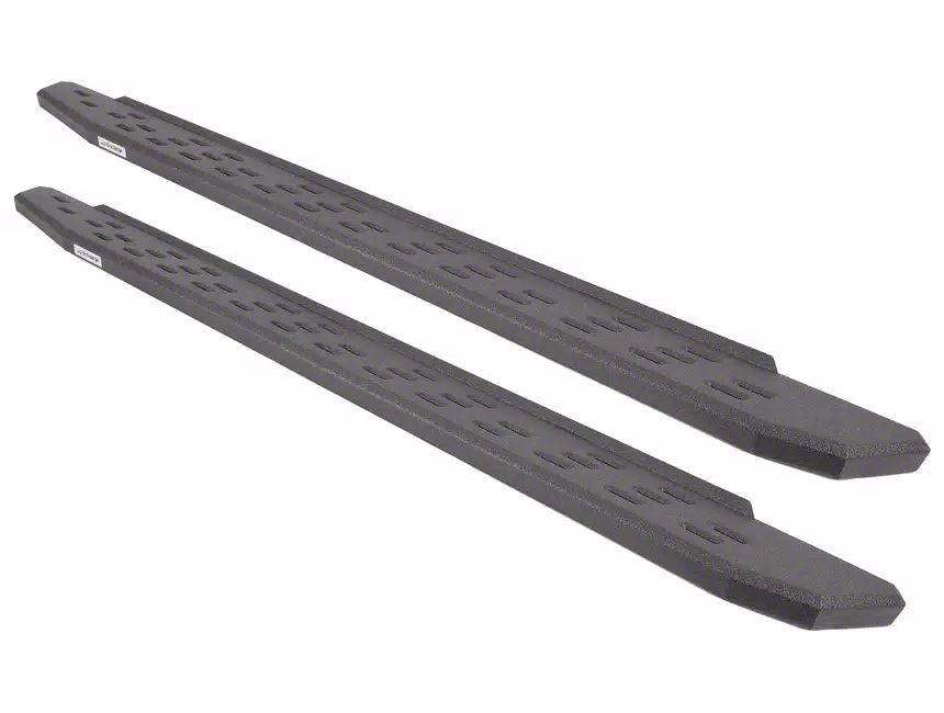 Inspired by the Ford Raptor design, the Go Rhino RB30 Running Boards offer an aggressive, stylish upgrade to your ride! These cab length running boards will weather impacts and corrosion with their zinc plated, galvanized 16-gauge steel construction. The RB30 running boards come with your choice of protective bedliner style coating or textured black powder coat finish. These running boards provide a wide 7" stepping surface that runs most of the length and tapers towards the ends with flow-through slots that prevent the build up of dirt, ice, mud and snow. Finished with stylish angles, a boxed end design, and weight rating of up to 600 lbs per side, these running boards will stand firm to the elements and give your vehicle a look that will stand out from the rest.