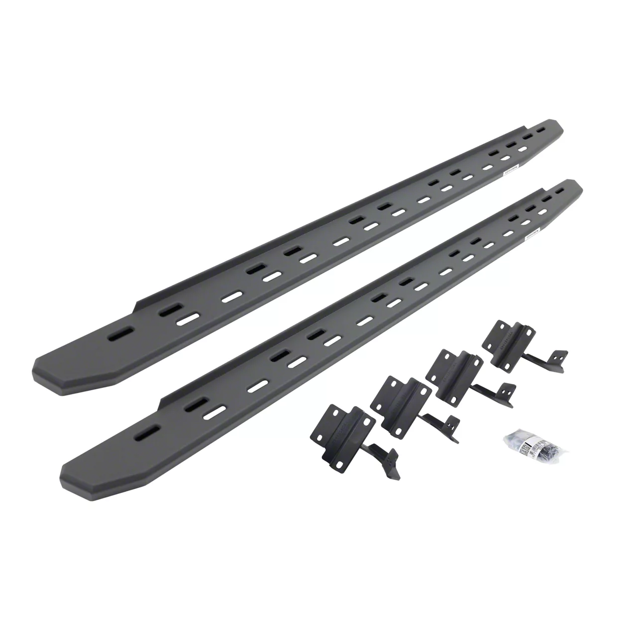 Installation. The installation of the RB30 Slim Line Running Boards is straightforward, requiring no drilling or vehicle modifications, which makes them easy to fit and remove as needed.