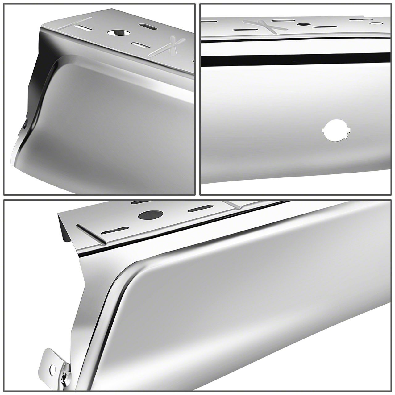 Rear Bumper End Cap; Pre-Drilled for Backup Sensors; Chrome; Passenger Side