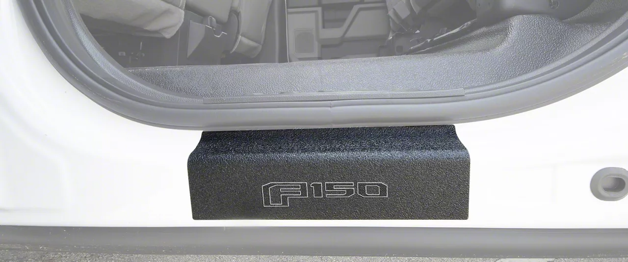 Rear Door Sill Protectors. Add a more expensive, upscale appearance to your F-150's interior with a set of Rear Door Sill Protectors that promote the F-150 logo. These Tuf-Liner Series Door Sill Protectors feature a similar look to spray in bed-liner and will protect your F-150's sills from scratches, dirt, rocks, and chipping paint. These Door Sill Protectors are an affordable and simple way to personalize your SuperCrew F-150.