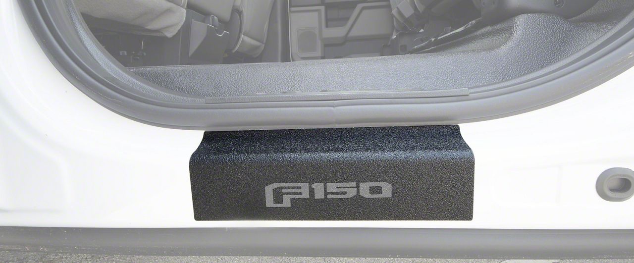 Rear Door Sill Protectors. Add a more expensive, upscale appearance to your F-150's interior with a set of Rear Door Sill Protectors that promote the F-150 logo. These Tuf-Liner Series Door Sill Protectors feature a similar look to spray in bed-liner and will protect your F-150's sills from scratches, dirt, rocks, and chipping paint. These Door Sill Protectors are an affordable and simple way to personalize your SuperCrew F-150.