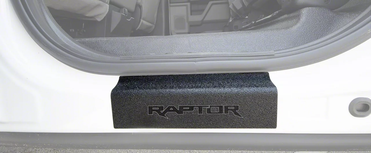 Rear Door Sill Protectors. Add a more expensive, upscale appearance to your F-150 Raptor's interior with a set of Rear Door Sill Protectors that promote the Raptor logo. These Tuf-Liner Series Door Sill Protectors feature a similar look to spray in bed-liner and will protect your F-150's sills from scratches, dirt, rocks, and chipping paint. These Door Sill Protectors are an affordable and simple way to personalize your F-150 Raptor.