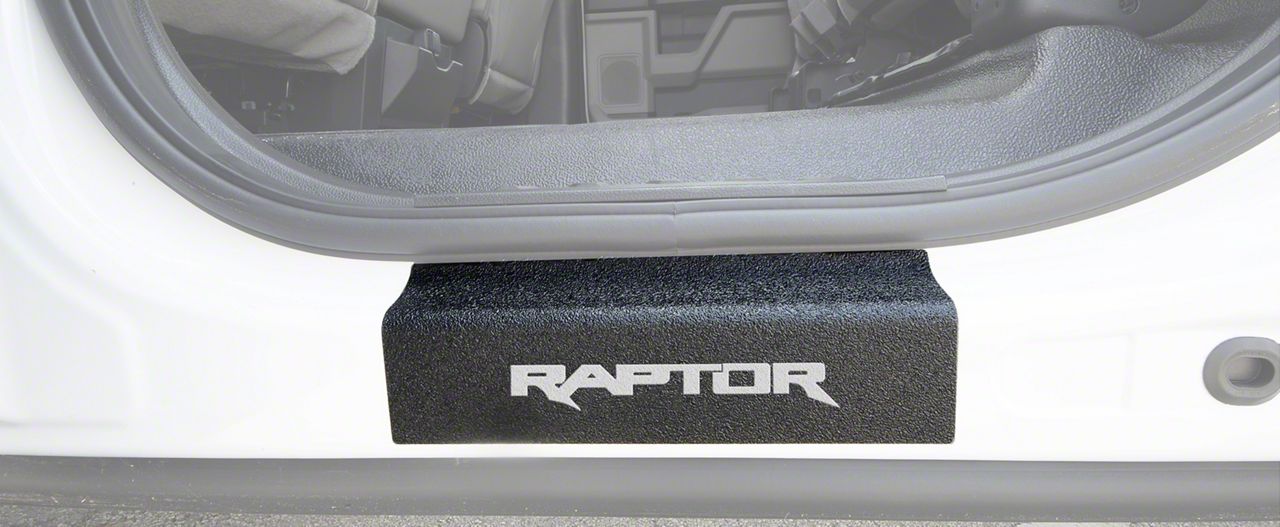 Rear Door Sill Protectors. Add a more expensive, upscale appearance to your F-150 Raptor's interior with a set of Rear Door Sill Protectors that promote the Raptor logo. These Tuf-Liner Series Door Sill Protectors feature a similar look to spray in bed-liner and will protect your F-150's sills from scratches, dirt, rocks, and chipping paint. These Door Sill Protectors are an affordable and simple way to personalize your F-150 Raptor.
