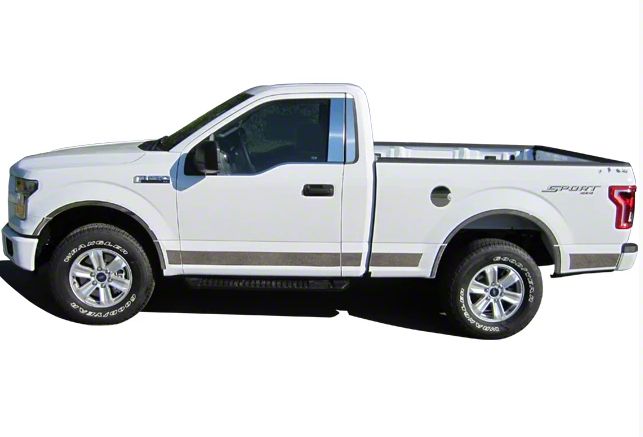 Application. This Stainless Steel Rocker Panel Trim is designed to fit all 2015-2020 Ford F-150 Regular Cab models.