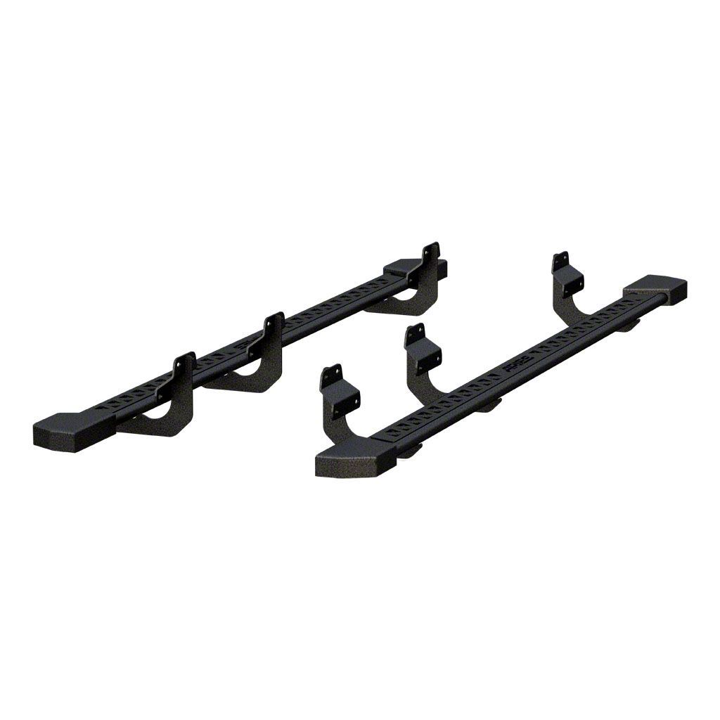 Description. Step Nerf Bar Kit; ARIES 2074120 Rocker Steps Rocker Guard Running Boards (Black Powder-Coated Steel)