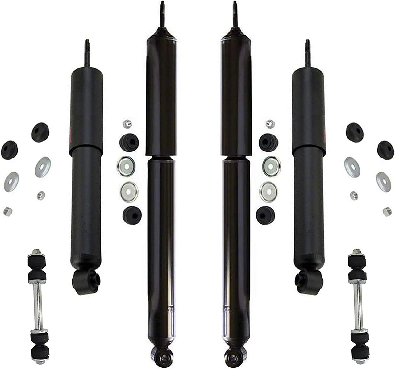 Application. These Front And Rear Shocks With Front Sway Bar Links fit 1997-2003 4WD F-150 models.