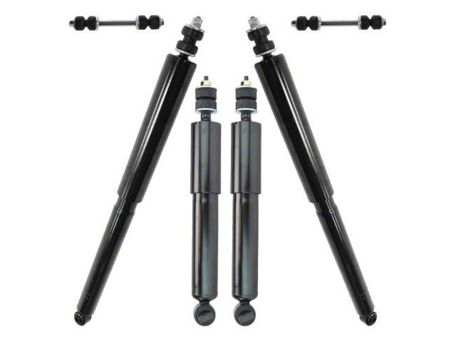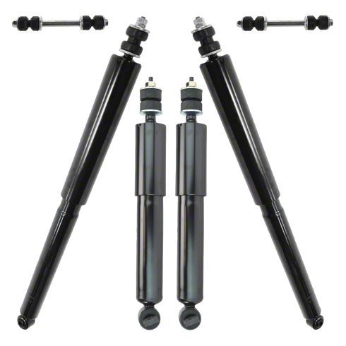 Construction and Appearance. Featuring a durable glossy black finish, each component is crafted to OE standards and built from quality materials for long-term reliability. These shock absorbers and sway bar links offer an ideal replacement for worn or aging parts while maintaining a clean, factory-style appearance.