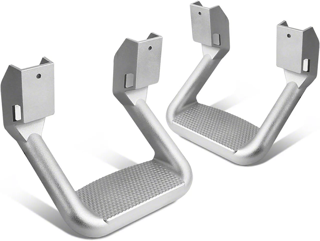 Construction and Appearance. Built from high-quality die-cast aluminum, these hoop steps combine strength with corrosion resistance. The silver surface offers a sharp look that complements a variety of vehicle styles, while the compact design makes them an unobtrusive yet practical upgrade.