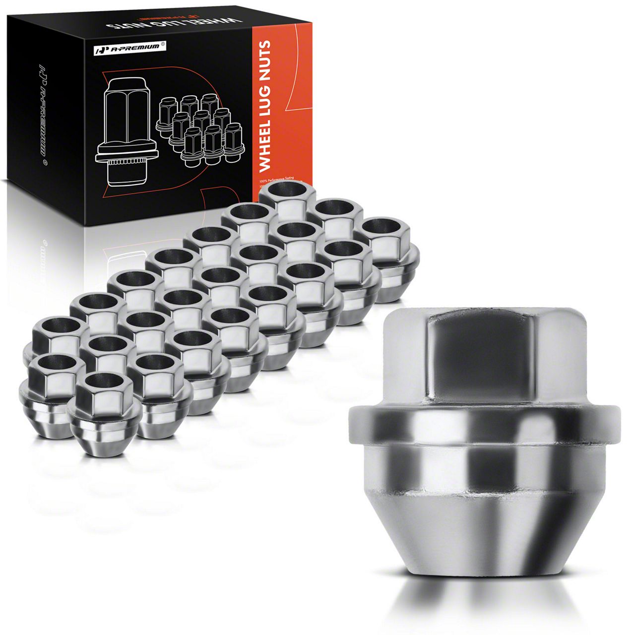 Premium Lug Nuts. The silver zinc-plated lug nuts, M14x2.0, set of 24, provide a secure and reliable means to fasten wheels to your vehicle. Designed for both front and rear installation, these lug nuts ensure wheel stability and safety, essential for maintaining proper wheel alignment and performance.