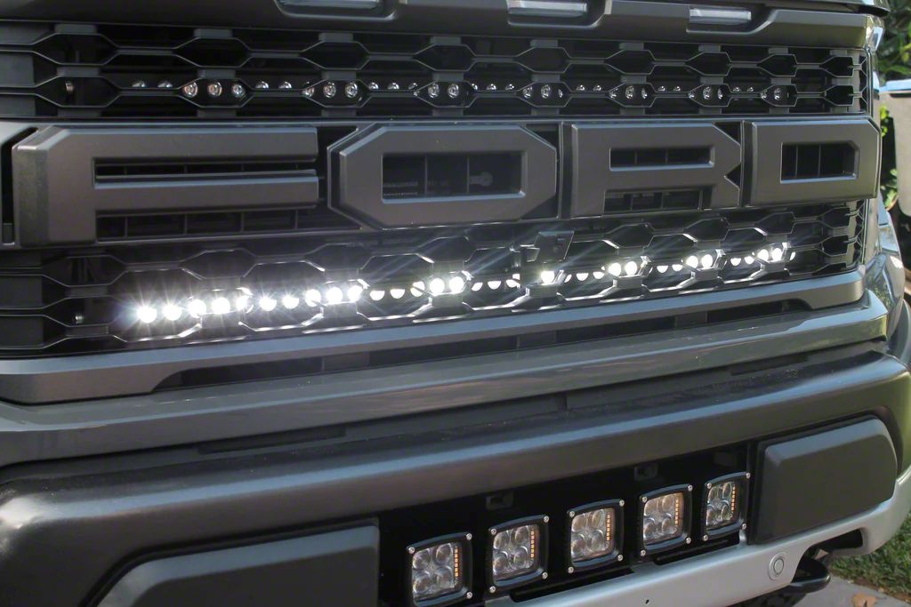 Application. The Single 40-Inch Amber LED Light Bar with Grille Mounting Brackets fit with 2021-2023 F-150 Raptor.